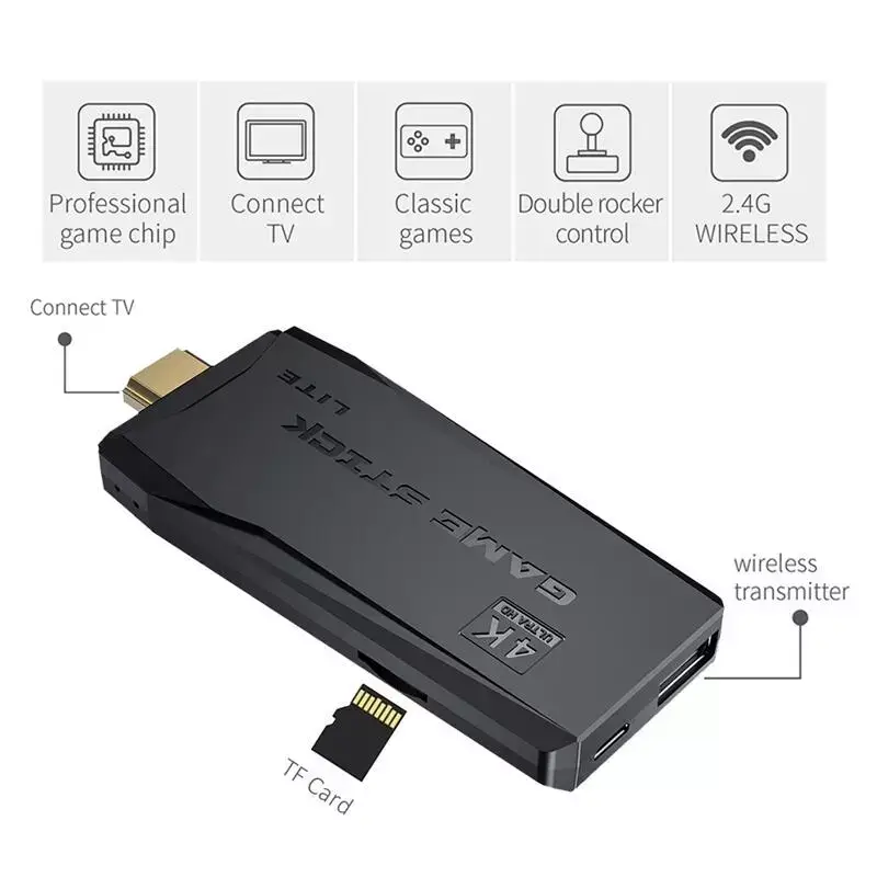Game Stick usa interface de conexão HDMI, você pode ligá-lo em TVs, monitores de computador, projetores com entradas HDMI sendo suportado até a resolução 4k HD.